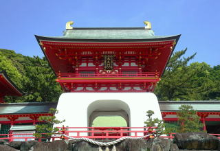 社殿は太平洋戦争で焼失。戦後、竜宮造の新社殿が再建される。平清盛の正室二位尼(平時子)が孫の安徳天皇を抱き、安徳帝の母建礼門院(平徳子)らとともに入水する時、二位尼の辞世の句「みもすそ川の
