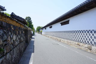 高杉晋作誕生旧宅 三の丸の北の総門を出ると外堀。下級武士や御用商人住居、寺院を集めた寺町などが設けられた。その中に高杉晋作、久坂玄瑞、山県有朋などの誕生地、木戸孝允など名士宅がある。白壁と海鼠壁の菊屋家、頑強な石積壁や瓦土壁で囲まれた武家長屋などが点在する。