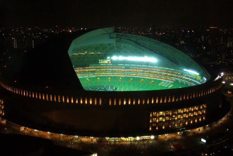 ホテルに引き上げた時、丁度ドームの天井が開いて眼下に明るいグリーン色が夜空に輝いた。