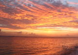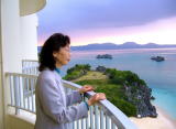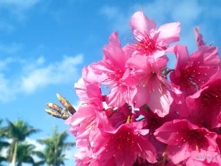 名護城址の桜見物をして名護のオーシャンビューホテルに到着した時、夕日が東シナ海に沈んだところであった。青い海が除々に茜色から紫色に変わるきれいな景色をホテルのバルコニーから眺められた。