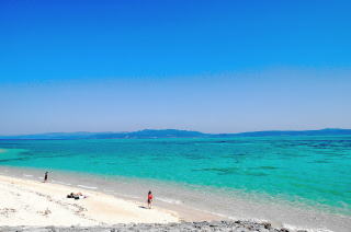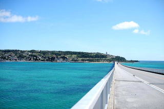 この後、古宇利島に向かう。2キロ近い古宇利大橋は無料で通行できる橋としては日本で一番長いらしい。橋の両側はきれいなエメラルドグリーンの海が広がり、白い海岸はもう夏景色である。