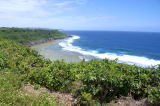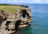 観光バスは東シナ海沿いに国道を南下、恩納村の万座毛に向かう。万人を座するに足りる原野が、名前の由来になっている。まるでゾウの鼻のように突き出している断崖は隆起サンゴであるらしい。