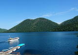 いよいよ期待の摩周湖。霧の摩周湖として知られるが快晴。昨日、一昨日と濃霧で何も見えなかったそうである。第一展望台から神の山といわれる摩周岳と神秘的な摩周のカルデラ湖を展望する。穏やかな湖上、日本一の透明度を誇る湖。吸い込まれそうな摩周ブルー。河川がないにもかかわらず水位変動がないのは、裏摩周の神の子池に伏水しているためとされている。30分程の見物時間は短かすぎた。