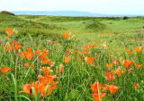 網走ドライブインで海鮮丼の昼食後、オホーツク海沿いの小清水原生花園に向かう。オホーツク海の砂丘海岸にエゾスカシユリが咲く。遥かかなたに斜里岳、その先の知床連山が望める好天気。