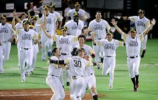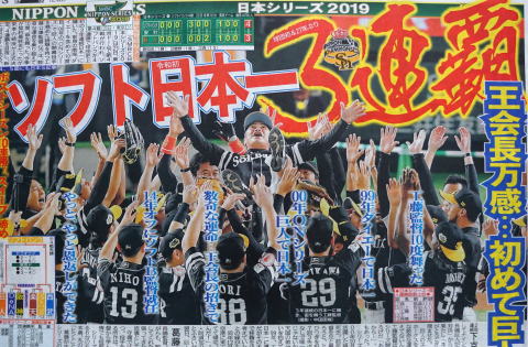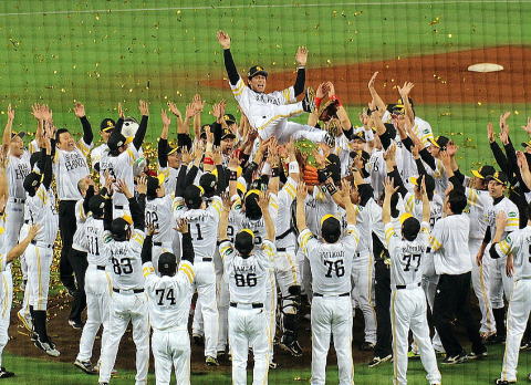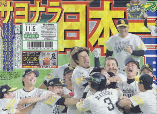 ところが最後まで何が起こるかわからない。満を持して登板した押さえのエース、ファルケンボーグがまさかのアクシデント。ヒヤヒヤしたが、森福・摂津の緊急登板で切り抜けて、8年ぶりの悲願も真の日本一を達成した。 |