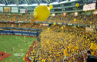 70年の球団史を綴る「ホークス栄光の軌跡」や南海ホークスグッズを買って、午後は胴上となる西武戦である。