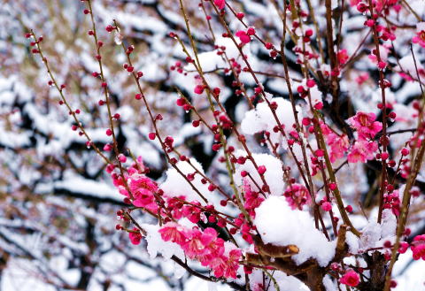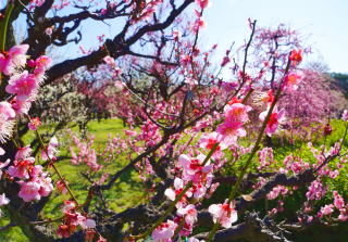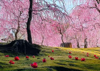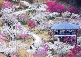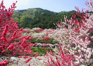 桜が咲き終える頃、南木曽妻籠から伊那飯田を結ぶ約40キロの国道は花桃街道になる。その途中の昼神温泉と月川温泉を中心に約1万本。中でも月川温泉は最も多く5千本程が咲く。八重の赤、ピンク、白の三色混合、桜よりボリュームがあり華やかさがある。