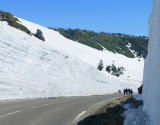 玉川温泉から秋田県と岩手県にまたがる広大な火山台地、八幡平を目指す。高度を上げると10mを越す残雪の壁。