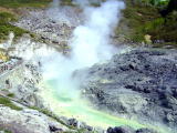 田沢湖から玉川のダムサイドを走って玉川温泉に向かう。大噴(オオブケ)と呼ばれる源泉の吹き出し口に降りてみる。この泉質はPH1の強酸性硫黄、鉄を溶かし農作物を枯らす玉川毒水と呼ばれた。そのため一時期、下流の田沢湖は死の湖となったが、現在は中和処理されている。